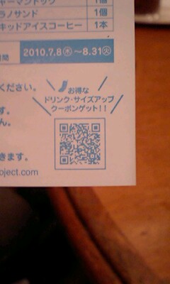 QRコードを読むだけでドリンクのサイズアップができるキャンペーン。 なんだけど… オイラの携帯 読んでくれないっス!