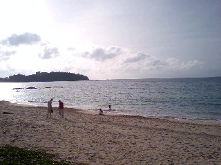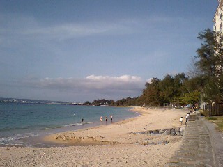 名護のとある海岸。 海開きもおこなわれ暖かくなったので海水浴を楽しむ方々や子ども達がいました。 潮の香り、波の音、日差し(夕方だから暑くない)すべてが心地よいです。 ふぅ〜