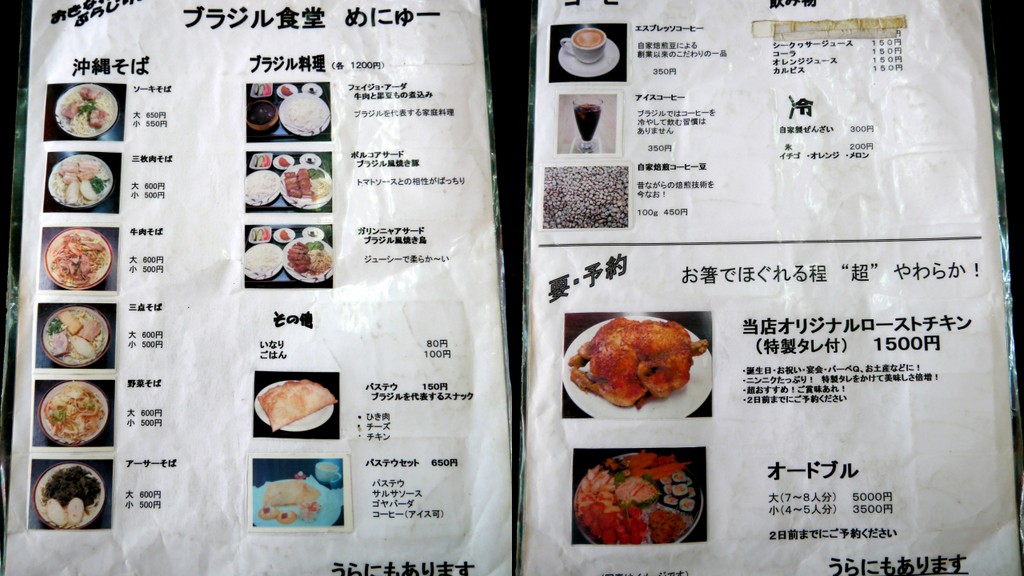 ブラジル食堂なのに何故 沖縄そば?という件に関しては、メニューが思いのほか少なく、沖縄そば類とブラジル料理の価格差が倍程あった…というのがひとつ。