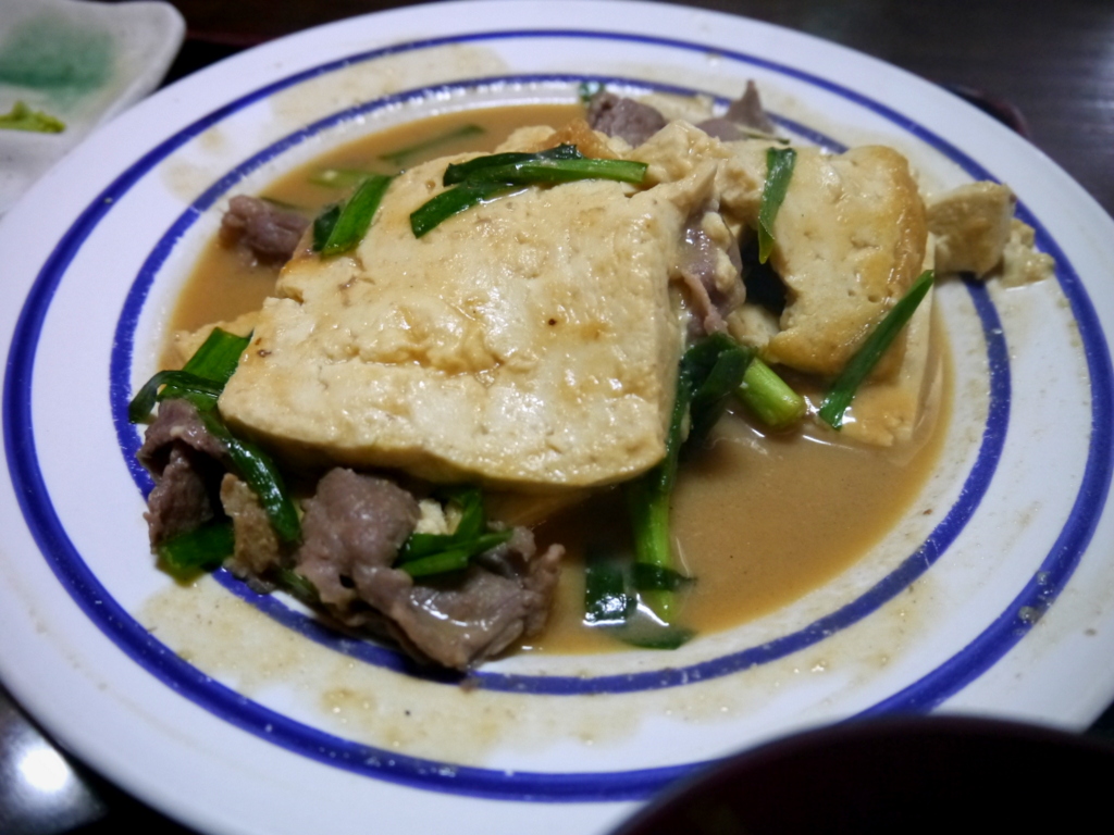 全体の量は満足なのだけど、日替わりメインのおかずが少なめになるのは大飯食らいにはちょっと物足りなく思う。牛肉豆腐の味付けは定番の味噌味。