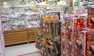 前回クリスマスのお楽しみ袋(子供のお菓子)でいっぱいだった場所が、正月用品売り場に変わってました。