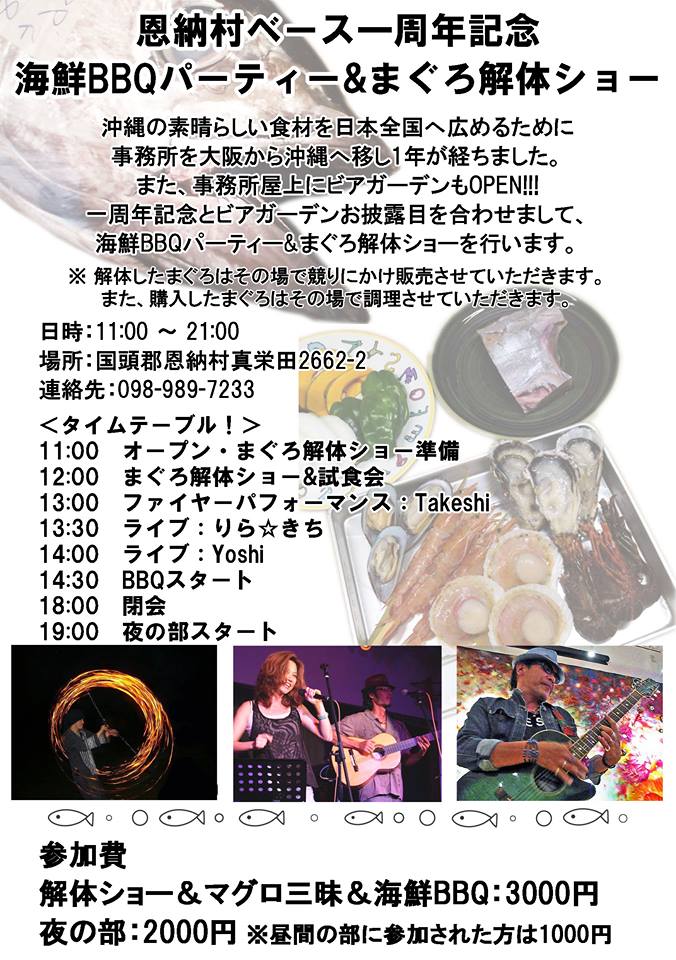 恩納村ベース一周年記念海鮮BBQパーティー&まぐろ解体ショー
