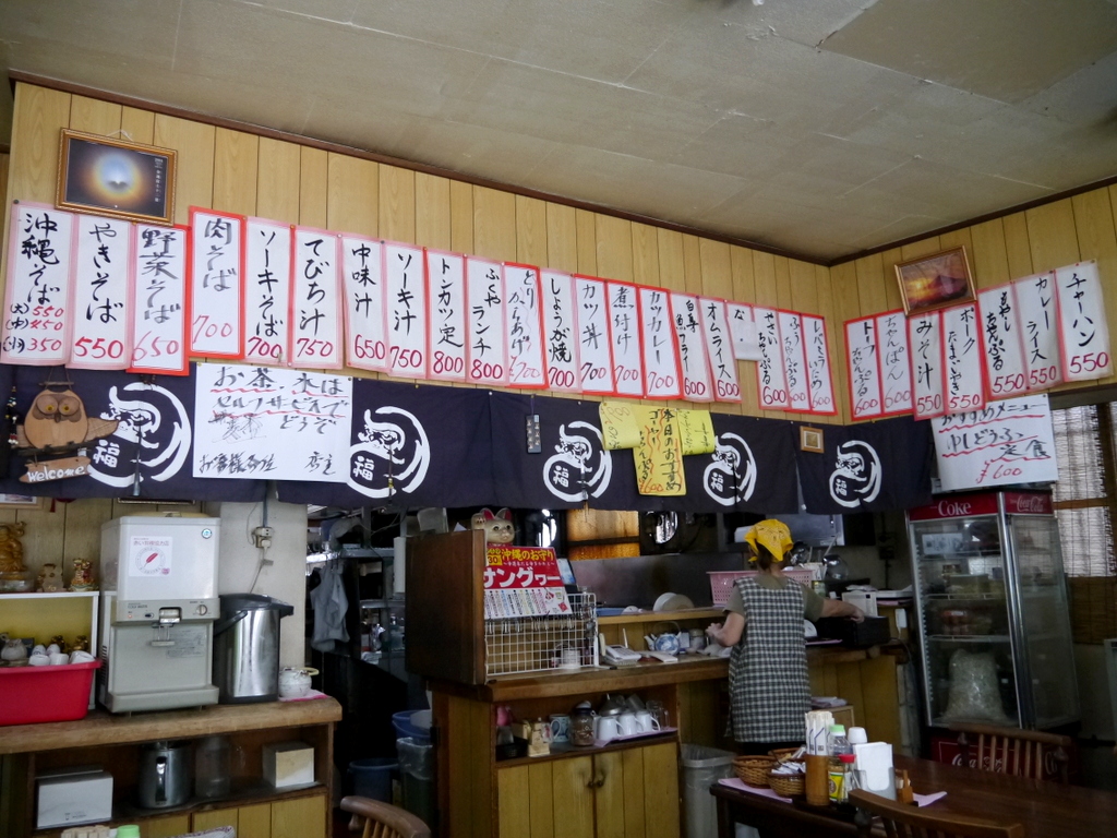 おばちゃん数名で頑張る、昔ながらのうちなー食堂という感じ。座敷もあるし、メニュー豊富なので、家族で来ても安心だね♪ちなみに、メニュー表は無い。店内に貼りめぐるメニューを見てオーダーする。