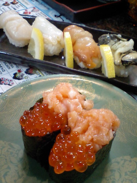 お客さんが多いので潤沢にネタは廻ってましたが、メニューのひかりもの4点盛り、貝類4点盛りが気になってこちらはオーダーしちゃいました。