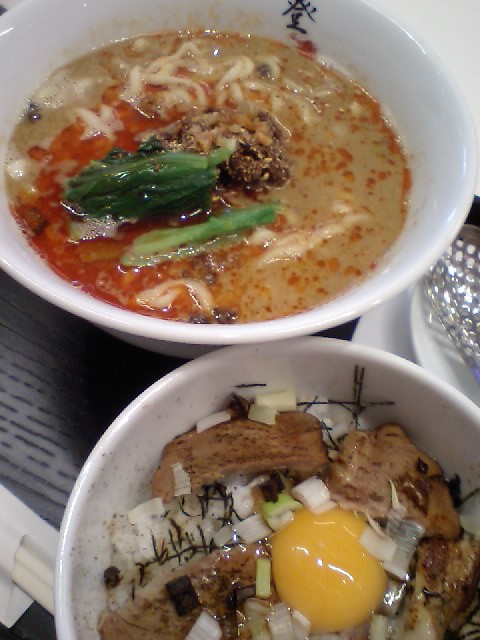 前回、ホタテが香る中華そばをオーダーしたので、今日は濃厚担々麺880円+玉子かけご飯250円にチャレンジ
