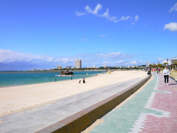 沖縄中部北谷町、ハンビーエリアにある開放的・アメリカンな雰囲気が漂うビーチ。