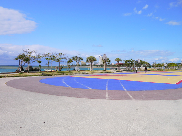 海外リゾートを思わせるビーチは、コバルトブルーの海と白い砂浜沿い全長約600mの遊歩道が続き、ジョギング・散歩を楽しむ姿が多く見られます。芝生のグランドにバスケットコート、海賊船のアスレチックなど、遊具施設が整備された安良波(あらは)公園は、地元に愛される癒やしスポット。夏はBBQも楽しめ、グループ・家族連れで賑わいます。